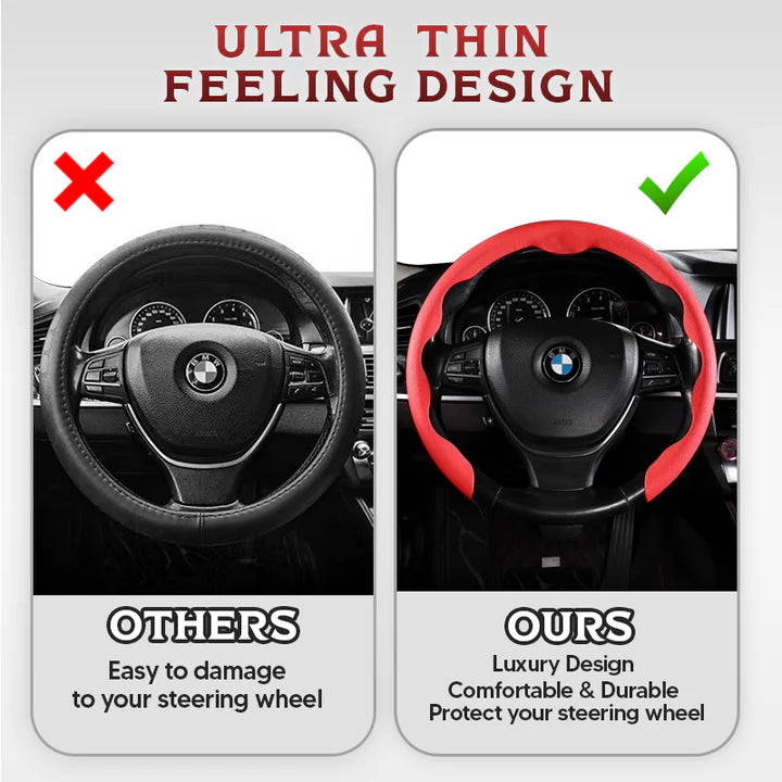 Rev up your car's aesthetics with the Breathable Anti-Slip Leather Car Steering Wheel Cover. Embrace the allure of luxury racing-inspired style that adds a dash of excitement to your daily drives.